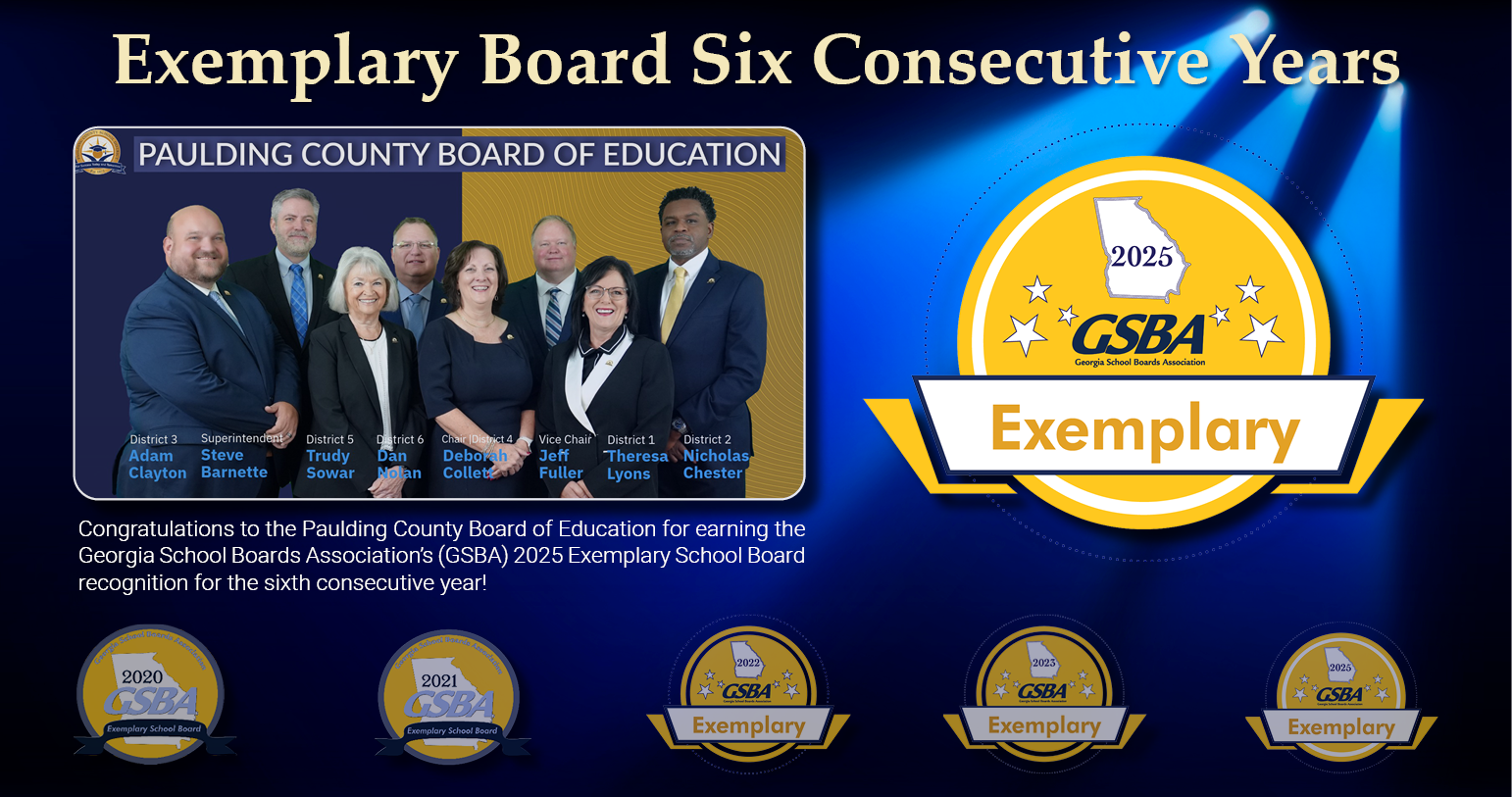 The Georgia School Board's Association has awarded the Paulding County Board of Education Exemplary Status for the sixth consecutive year. Click here to read more.