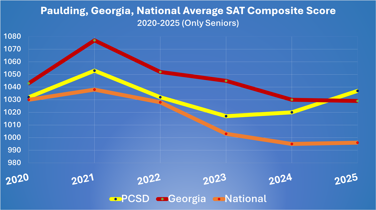 Paulding County School District’s SAT scores for the Class of 2025 climbed 17 points, while state and national results declined. The PCSD Class of 2025 earned an average total score of 1037, topping state and national averages. Click to read more.